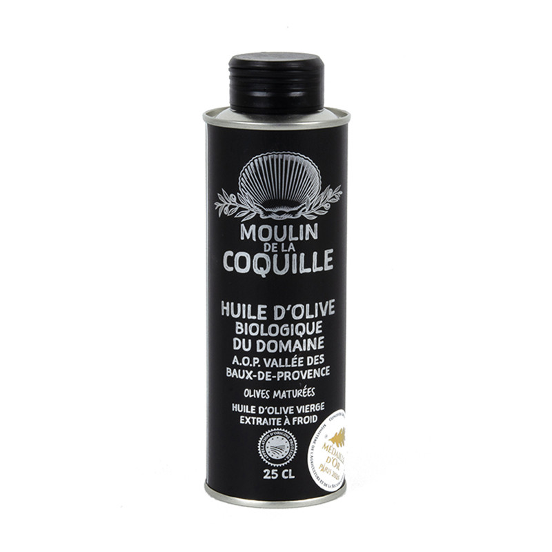 Huile d'Olive Biologique Vierge AOP Vallée des Baux-de-Provence Olives Maturées Moulin de la Coquille